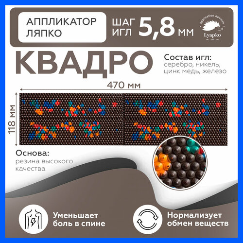 Аппликатор Ляпко Квадро 5,8 представляет собой эластичную резиновую пластину с закрепленными на ней иглами из необходимых для организма металлов: цинка, меди, железа, никеля и серебра.