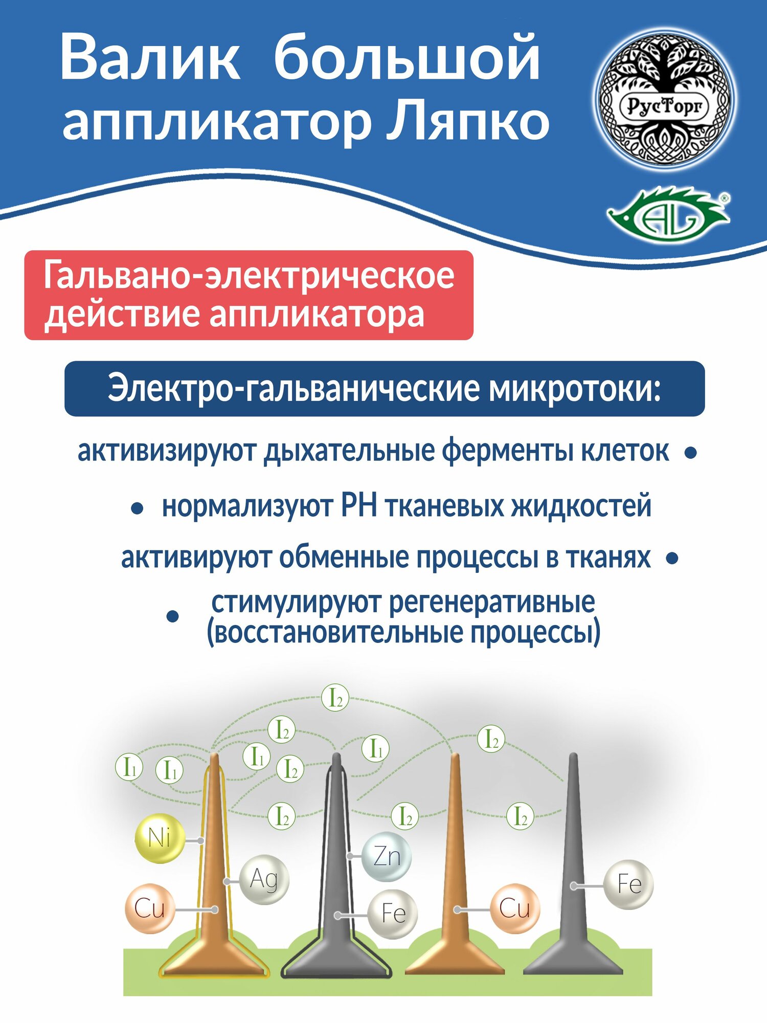 Гальванический ток, возникающий в коже, на остриях и между иглами носит импульсный характер. При обработке спины и других труднодоступных участков тела валик требует участия помощника. Валик Универсальный М предназначен для лечения и точной рефлекторной диагностики. Благодаря гибким боковым резиновым втулкам оказывается более мягкое, деликатное воздействие на кожу.