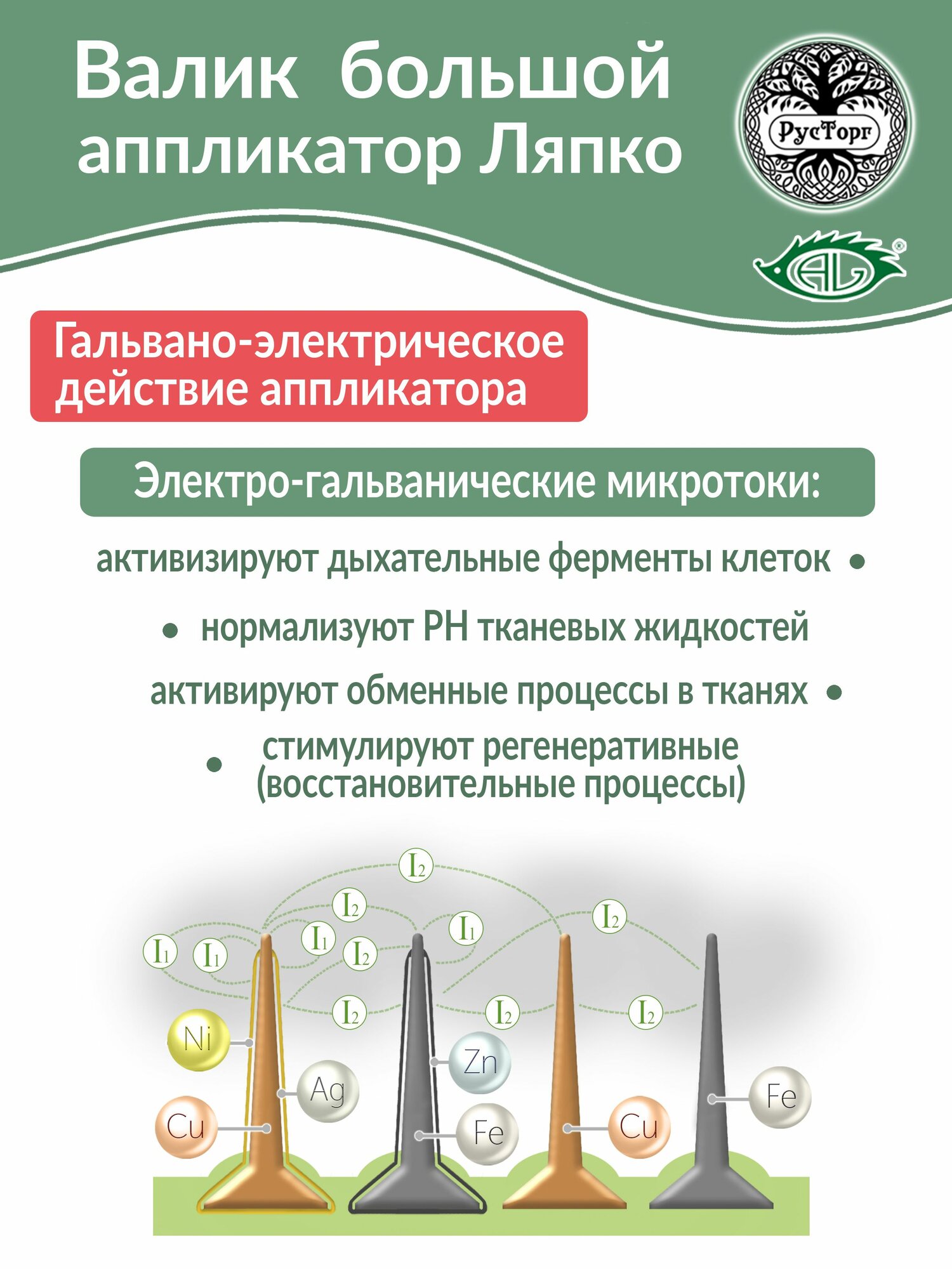 Устройство Аппликатор Ляпко цилиндричесое"Валик большой" имеет шаг иглы - 5,0, размер - 111хd61 мм, кол-во игл - 570. Благодаря оптимальным размерам рабочей поверхности и расстояниям между иглами, валик используется во всех возрастных группах без ограничения. Валики — это аппликационные устройства для динамического воздействия (миллионный «игольчатый душ»). Используются на всех участках тела: спина, поясница, область ягодиц, грудная клетка, живот, конечности. Терапевтический эффект достигается в несколько раз быстрее, чем при применении статического аппликатора. Гальванический ток, возникающий в коже, на остриях и между иглами носит импульсный характер. При обработке спины и других труднодоступных участков тела валик требует участия помощника. Валик Универсальный М предназначен для лечения и точной рефлекторной диагностики. Благодаря гибким боковым резиновым втулкам оказывается более мягкое, деликатное воздействие на кожу. Применяется для терапевтического воздействия на любые участки тела, головы и лица. Рекомендован для применения взрослым и детям. Используя валик, можно оказать успокаивающее (седативное) или возбуждающее (тонизирующее) действие. Для получения успокаивающего эффекта (например, при болях в пояснично-крестцовой области или в нижних конечностях) сеанс длится 10-15 минут с охватом большого участка поверхности тела. При сеансе лечения по возбуждающему методу (например, при парезе мышц и других состояниях) производится быстрое и сильное раздражение в течение 5-7 минут, но с захватом меньшей площади тела. Иглы валика, соприкасаясь с кожей, не повреждают ее. Метод эффективен и неинвазивен, т. е. полностью исключает перенос инфекции (вирусного гепатита, спида). С помощью данного вида валиков можно проводить рефлекторную диагностику как проявивших себя заболеваний, так и скрытых. Диагностический метод основан на том факте, что на коже человека находятся определенные зоны проекции висцеральных (внутренних) органов. В этих зонах при заболевании соответствующих органов появляются изменения в виде гипо- или гиперестезии (нарушения чувствительности), повышения или понижения температуры, усиления или уменьшения кровенаполнения (изменение цвета кожи от резкой бледности до интенсивного покраснения), появления местного отека. Гарантийный срок - 1 год согласно ТУ.