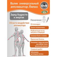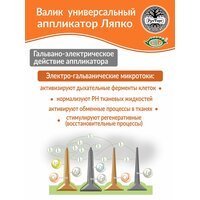 Устройство Аппликатор Ляпко цилиндричесое"Валик Универсальный М"с резиновыми втулками, шаг иглы - 3,5, ширина - 72 мм, диаметр 51мм, кол-во игл 496. Состав: железо, медь, никель, цинк, серебро, резина медицинского назначения. Валики — это аппликационные устройства для динамического воздействия (миллионный «игольчатый душ»). Используются на всех участках тела: спина, поясница, область ягодиц, грудная клетка, живот, конечности. Терапевтический эффект достигается в несколько раз быстрее, чем при применении статического аппликатора. Гальванический ток, возникающий в коже, на остриях и между иглами носит импульсный характер. При обработке спины и других труднодоступных участков тела валик требует участия помощника. Валик Универсальный М предназначен для лечения и точной рефлекторной диагностики. Благодаря гибким боковым резиновым втулкам оказывается более мягкое, деликатное воздействие на кожу. Применяется для терапевтического воздействия на любые участки тела, головы и лица. Рекомендован для применения взрослым и детям. Используя валик, можно оказать успокаивающее (седативное) или возбуждающее (тонизирующее) действие. Для получения успокаивающего эффекта (например, при болях в пояснично-крестцовой области или в нижних конечностях) сеанс длится 10-15 минут с охватом большого участка поверхности тела. При сеансе лечения по возбуждающему методу (например, при парезе мышц и других состояниях) производится быстрое и сильное раздражение в течение 5-7 минут, но с захватом меньшей площади тела. Иглы валика, соприкасаясь с кожей, не повреждают ее. Метод эффективен и неинвазивен, т. е. полностью исключает перенос инфекции (вирусного гепатита, спида). С помощью данного вида валиков можно проводить рефлекторную диагностику как проявивших себя заболеваний, так и скрытых. Диагностический метод основан на том факте, что на коже человека находятся определенные зоны проекции висцеральных (внутренних) органов. В этих зонах при заболевании соответствующих органов появляются изменения в виде гипо- или гиперестезии (нарушения чувствительности), повышения или понижения температуры, усиления или уменьшения кровенаполнения (изменение цвета кожи от резкой бледности до интенсивного покраснения), появления местного отека. Гарантийный срок - 1 год согласно ТУ.