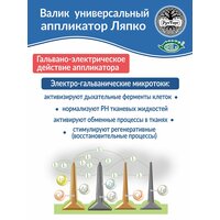 Устройство Аппликатор Ляпко цилиндричесое"Валик Универсальный М"с резиновыми втулками, шаг иглы - 3,5, ширина - 72 мм, диаметр 51мм, кол-во игл 496. Состав: железо, медь, никель, цинк, серебро, резина медицинского назначения. Валики — это аппликационные устройства для динамического воздействия (миллионный «игольчатый душ»). Используются на всех участках тела: спина, поясница, область ягодиц, грудная клетка, живот, конечности. Терапевтический эффект достигается в несколько раз быстрее, чем при применении статического аппликатора. Гальванический ток, возникающий в коже, на остриях и между иглами носит импульсный характер. При обработке спины и других труднодоступных участков тела валик требует участия помощника. Валик Универсальный М предназначен для лечения и точной рефлекторной диагностики. Благодаря гибким боковым резиновым втулкам оказывается более мягкое, деликатное воздействие на кожу. Применяется для терапевтического воздействия на любые участки тела, головы и лица. Рекомендован для применения взрослым и детям. Используя валик, можно оказать успокаивающее (седативное) или возбуждающее (тонизирующее) действие. Для получения успокаивающего эффекта (например, при болях в пояснично-крестцовой области или в нижних конечностях) сеанс длится 10-15 минут с охватом большого участка поверхности тела. При сеансе лечения по возбуждающему методу (например, при парезе мышц и других состояниях) производится быстрое и сильное раздражение в течение 5-7 минут, но с захватом меньшей площади тела. Иглы валика, соприкасаясь с кожей, не повреждают ее. Метод эффективен и неинвазивен, т. е. полностью исключает перенос инфекции (вирусного гепатита, спида). С помощью данного вида валиков можно проводить рефлекторную диагностику как проявивших себя заболеваний, так и скрытых. Диагностический метод основан на том факте, что на коже человека находятся определенные зоны проекции висцеральных (внутренних) органов. В этих зонах при заболевании соответствующих органов появляются изменения в виде гипо- или гиперестезии (нарушения чувствительности), повышения или понижения температуры, усиления или уменьшения кровенаполнения (изменение цвета кожи от резкой бледности до интенсивного покраснения), появления местного отека. Гарантийный срок - 1 год согласно ТУ.