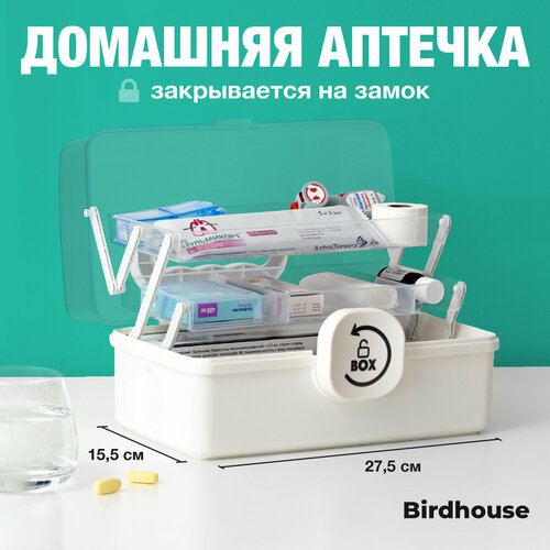 Большая аптечка домашняя — лучшее решение для удобного поиска лекарств. Просторная, функциональная и безопасная аптечка контейнер от Birdhouse создана для того, чтобы облегчить хранение и поиск нужных таблеток, не переворачивая при этом остальные лекарства. Трехуровневая аптечка с раскладывающейся системой вместит в себя все необходимые медикаменты: сиропы, драже, градусники, бинты, вату, лейкопластыри — все, что рано или поздно может пригодиться в оказании помощи. Внизу размещайте все бутылочки, большие коробки и запасные лекарства, на втором уровне, в малых отсеках, то, чем пользуетесь обычно и регулярно, верхний уровень идеально подойдет для средств первой необходимости — пластырей, ваты, мазей от ожогов, обезболивающих и других медикаментов. Органайзер для лекарств выполнен из прочного ABC пластика. Материал отлично переносит случайные удары, потертости или сколы, сохраняя свой первоначальный внешний вид. Контейнер для лекарств большой, но при этом очень компактный и легко помещается на полочку в шкаф, комод или тумбочку. Замок спереди надежно закроет ящик для лекарств и он не откроется даже при случайном падении. Такая система безопасна в доме, где есть дети — ребенок не сможет открыть бокс для лекарств, так как замок нужно повернуть строго на 90 градусов. Контейнер для хранения лекарственных средств дает полный обзор на все, что есть внутри. Больше не нужно вынимать половину аптечки, чтобы достать нужные таблетки со дна коробки. Просто поворачиваете замок, тяните за ручку и контейнер под лекарства раскладывается в широкую витрину, где каждый ярус удобно раскрывается и дает доступ к содержимому. Ручка служит отличной опорой и держит крышку, чтобы аптечка с замком устойчиво стояла на столе или диване. Прозрачные ящики коробочки для лекарств помогают лучше видеть, что именно лежит на каждом ярусе и достать нужное лекарство с первого раза. Размеры аптечки пластиковой для дома: длина 27.5 см, ширина 15.5 см, высота 15.5 см. Объем главного отделения аптечки 3 литра, общий объем — 7 литров. Ящик для таблеток Birdhouse — это практичная и удобная аптечка домашняя. Универсальная, вместительная и абсолютно безопасная коробочка с лекарствами всегда будет под рукой, когда это станет необходимо.