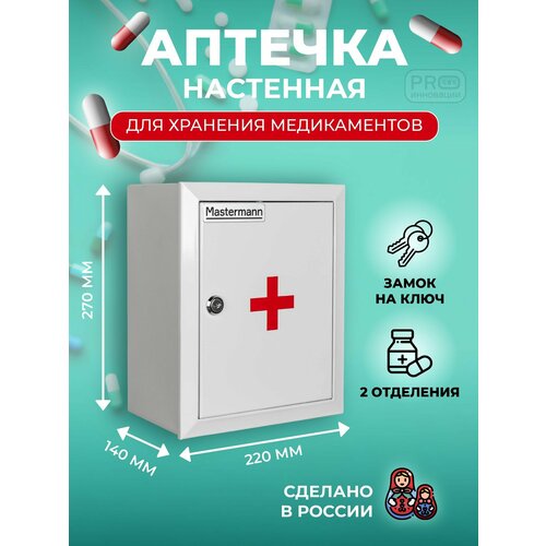 Представляем настенную аптечку металлическую с замком от MASTERMANN, идеальное решение для хранения медицинских препаратов и первой помощи. С размерами 270х220х140 мм, она станет незаменимым элементом в вашем доме или офисе. Этот аптечный шкаф подходит для размещения на стене, что экономит место и обеспечивает легкий доступ к медикаментам.