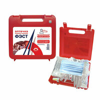 Бинт эластичный трубчатый медицинский нестерильный №6 - 2 шт., Вата нестерильная, 50 г - 2 уп., Сульфацил-натрия раствор 20%, 1 мл №2 тюбик-капельница или 5 мл флакон-капельница или пл 10 мл - 2 уп., Перекиси водорода раствор 3% — 40 мл - 2 фл., Спрей «Олазоль» или Д-Пантенол мазь 5%, 25 г или Пантенол-ратиофарм 5% — 35 г - 1 шт., Нитроглицерин, капс. 0,5 мг №20 или табл. 0,5 мг №40 - 1 уп., Валидол, табл. 60 мг №6 или №10 - 2 уп., Устройство для проведения искусственного дыхания «Рот-Устройство-Рот» - 1 уп., Аммиака раствор 10%, 10 мл или 40 мл - 2 фл., Уголь активированный, табл. 250 мг №10 - 2 уп., Корвалол, 15 мл - 2 фл., Ножницы - 1 шт., Стаканчик мерный - 1 шт., Термометр медицинский - 1 шт., Перчатки нестерильные - 3 пары, Футляр для аптечки - 1 шт. |