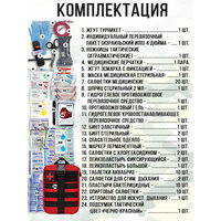 Аптечка состоит из 24 предметов, которые помогут вам быстро реагировать на любую ситуацию. Она имеет мягкую форму, что делает ее удобной для ношения на теле или в сумке.