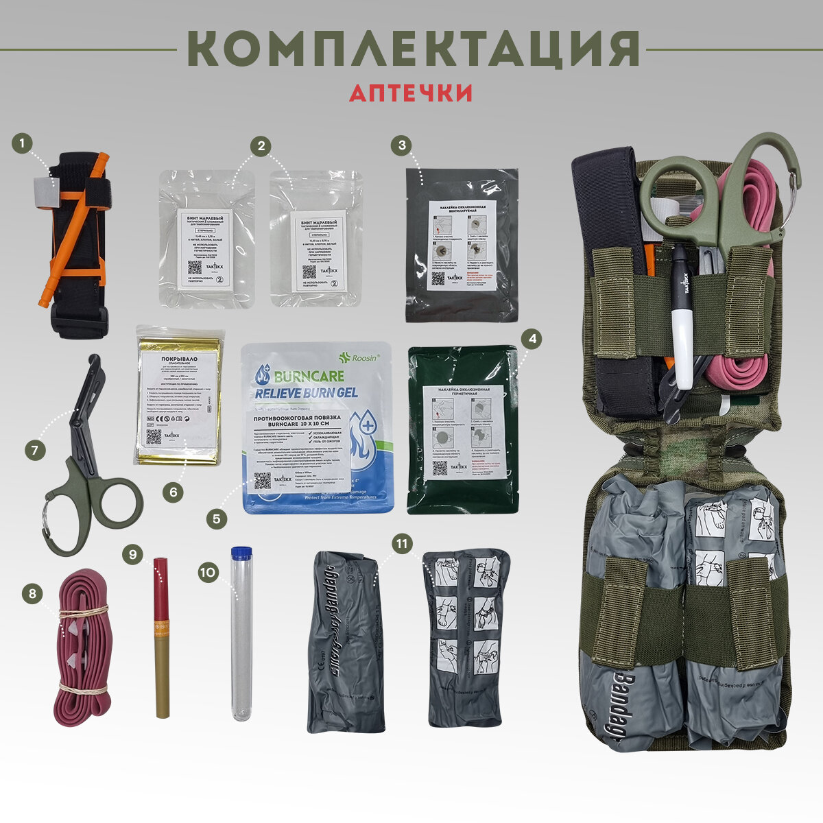 Комплектация Аптечки тактической укомплектованной от компании TAKTIKX :