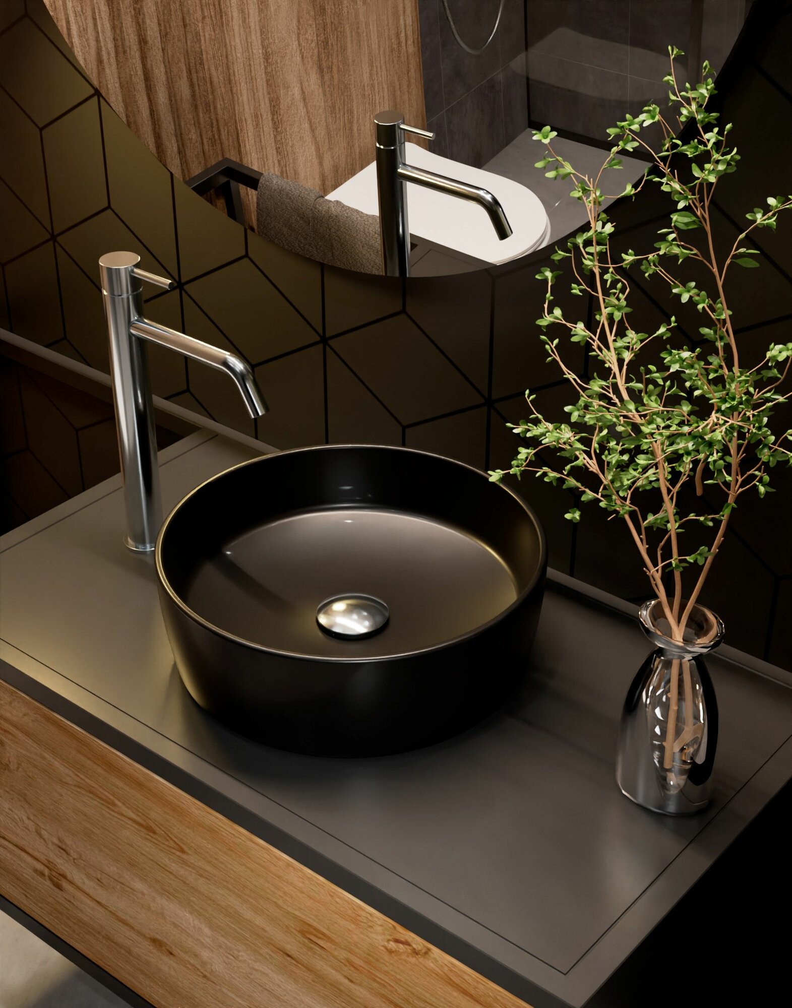 AQM5012 Раковина накладная круглая, цвет черный матовый. 355x355x120: сравнение цен, характеристики, фото, актуальное наличие и цены.