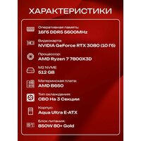 Aqua Ultra E-ATX AIO 360 белый, B650, R7 7800X3D AIO3, 512 NVME, 16 ГБ DDR5, RTX 3080 (10 Гб), 850W