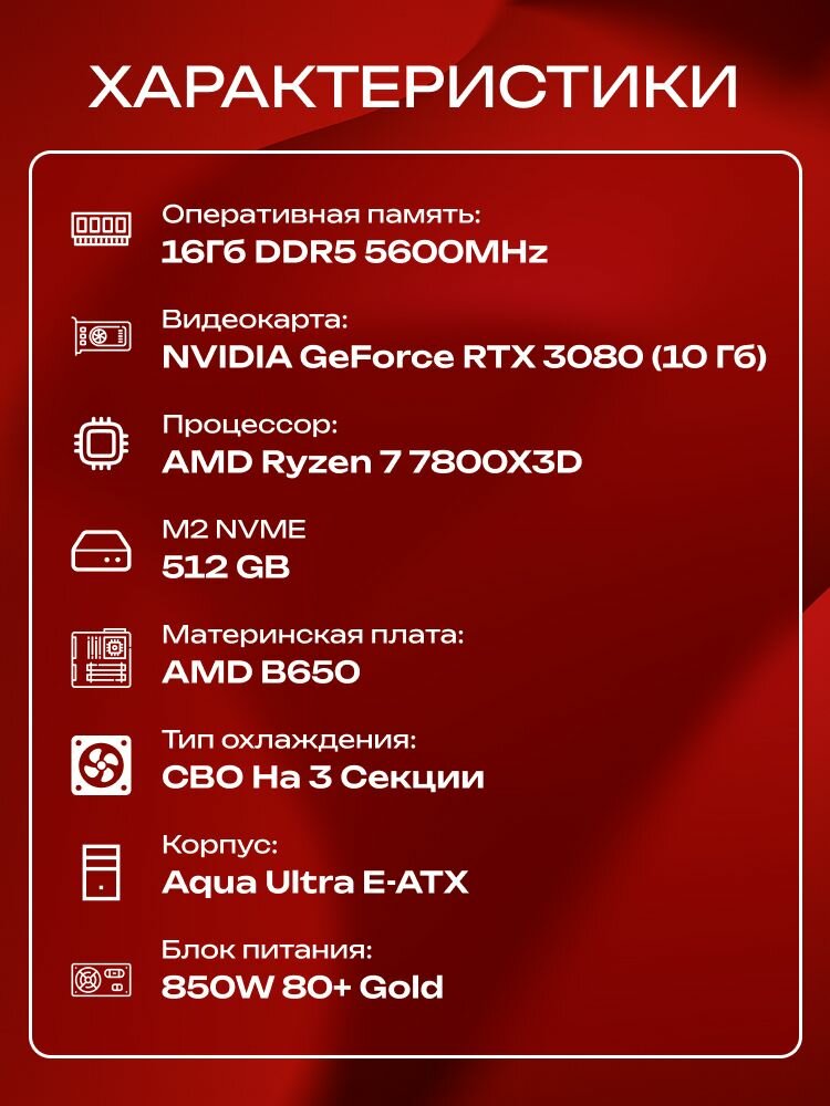 Aqua Ultra E-ATX AIO 360 белый, B650, R7 7800X3D AIO3, 512 NVME, 16 ГБ DDR5, RTX 3080 (10 Гб), 850W: сравнение цен, характеристики, фото, актуальное наличие и цены.