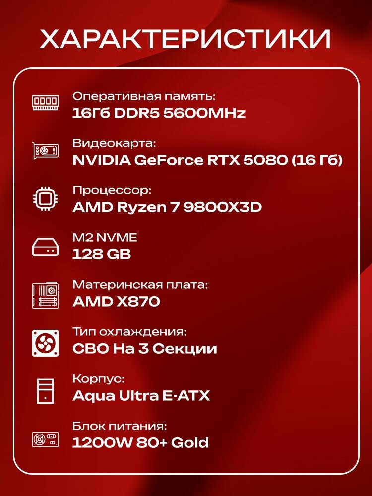 Aqua Ultra E-ATX AIO 360 белый, X870, R7 9800X3D AIO3, 128 NVME, 16 ГБ DDR5, RTX 5080 (16 Гб), 1200W: сравнение цен, характеристики, фото, актуальное наличие и цены.
