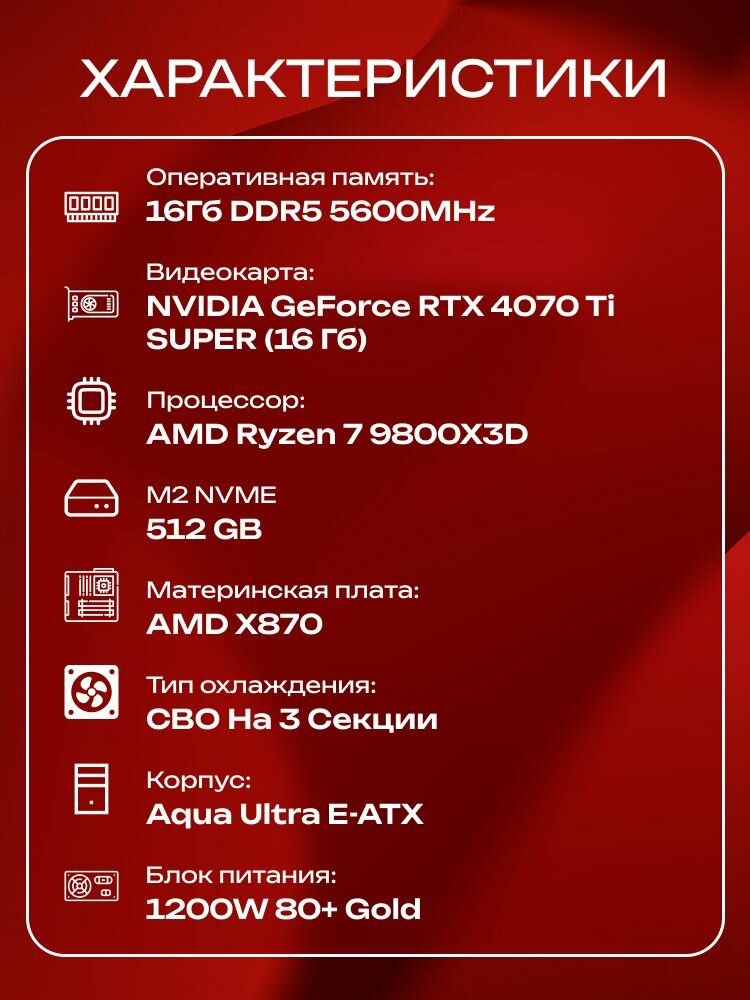 Купить Aqua Ultra E-ATX AIO 360 белый, X870, R7 9800X3D AIO3, 512 NVME, 16 ГБ DDR5, RTX 4070 Ti SUPER (16 Гб), 1200W с доставкой по всей России. Aqua Ultra E-ATX AIO 360 белый, X870, R7 9800X3D AIO3, 512 NVME, 16 ГБ DDR5, RTX 4070 Ti SUPER (16 Гб), 1200W: сравнение цен, характеристики, фото, актуальное наличие и цены.