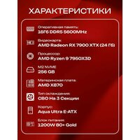 Aqua Ultra E-ATX AIO 360 чёрный, X870, R9 7950X3D AIO3, 256 NVME, 16 ГБ DDR5, RX 7900 XTX (24 Гб), 1200W