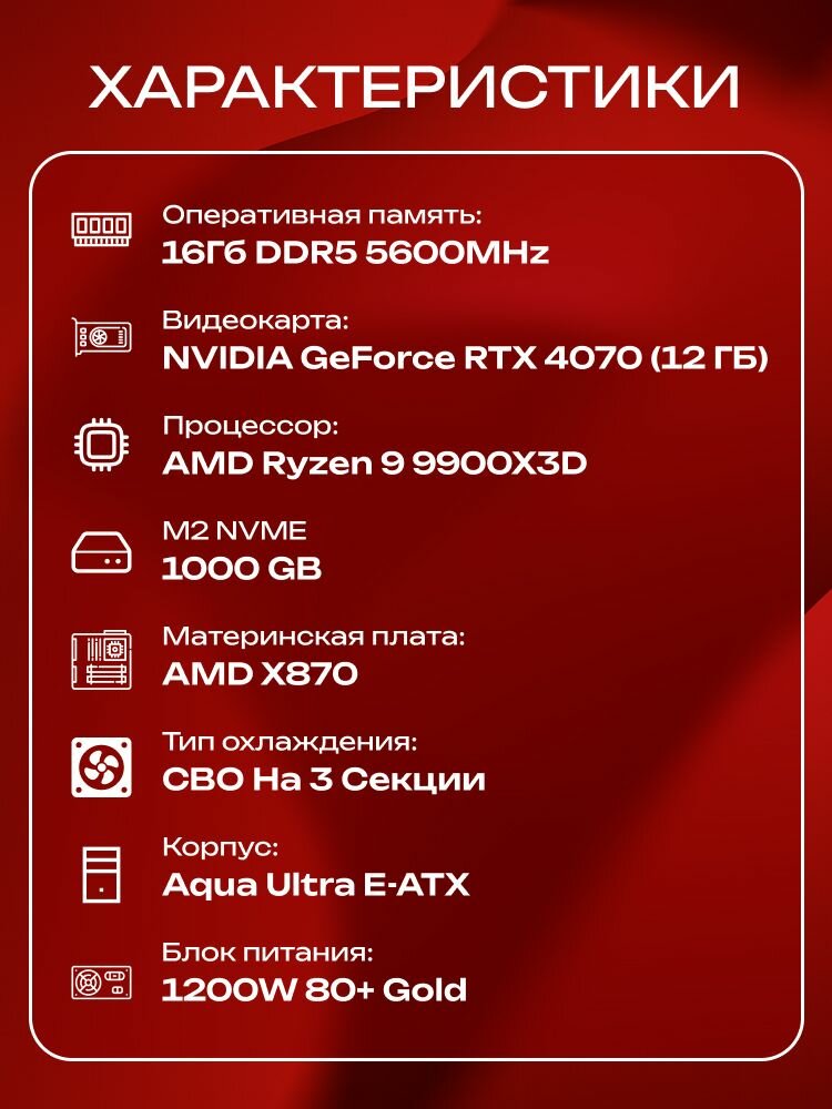 Aqua Ultra E-ATX AIO 360 чёрный, X870, R9 7950X3D AIO3, 128 NVME, 16 ГБ DDR5, RTX 4070 (12 ГБ), 1200W