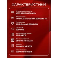 Aqua Ultra E-ATX AIO 360 чёрный, X870, R9 9900X3D AIO3, 128 NVME, 64 ГБ DDR5, RTX 5080 (16 Гб), 1200W