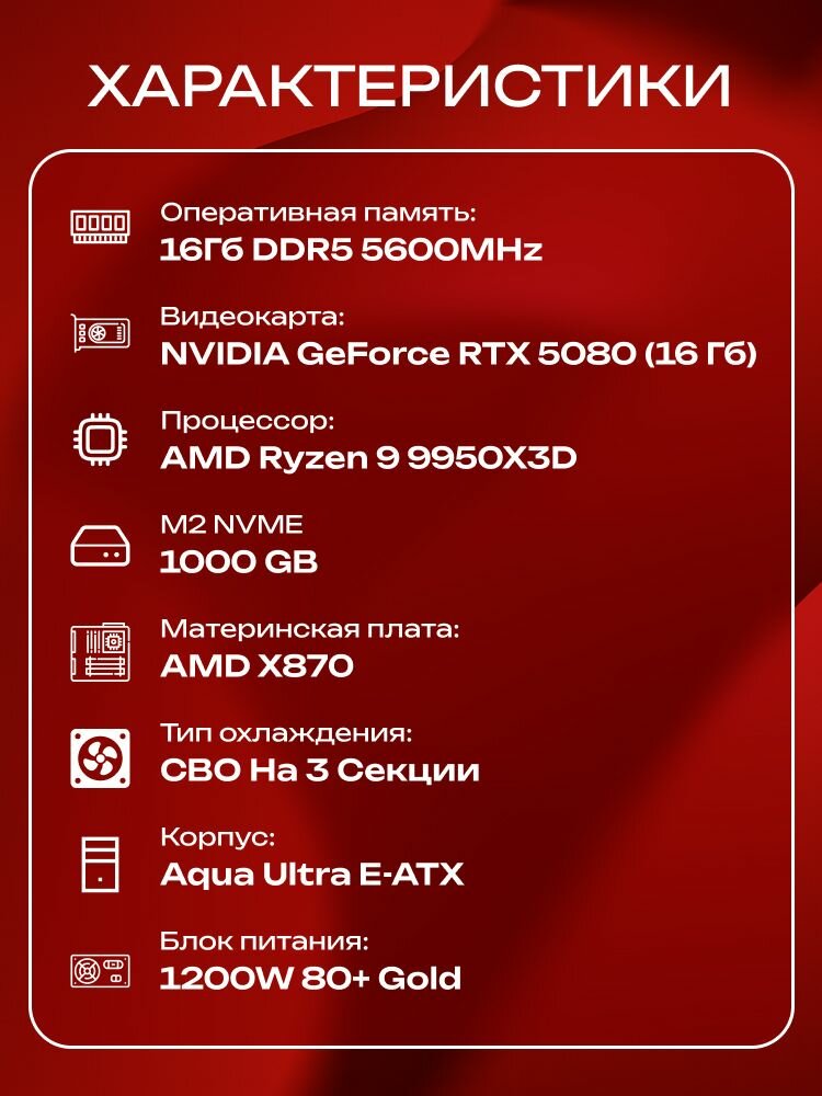 Aqua Ultra E-ATX AIO 360 чёрный, X870, R9 9950X3D AIO3, 128 NVME, 16 ГБ DDR5, RTX 5080 (16 Гб), 1200W