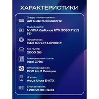 Aqua Ultra E-ATX AIO 360 белый, Z790, i7-14700KF AIO3, 2000 NVME, 32 ГБ DDR5, RTX 3080 Ti (12 Гб), 1200W: сравнение цен, характеристики, фото, актуальное наличие и цены.