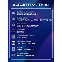 Aqua Ultra E-ATX AIO 360 белый, Z790, i9-14900KF AIO3, 128 NVME, 16 ГБ DDR5, RTX 4060 Ti (8 Гб), 1200W