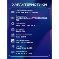 Купить Aqua Ultra E-ATX AIO 360 чёрный, B760, i7-13700K AIO3, 2000 NVME, 128 ГБ DDR4, RTX 3080 Ti (12 Гб), 1200W с доставкой по всей России.