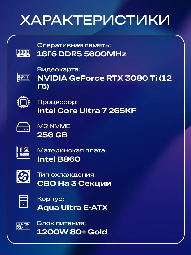 Купить Aqua Ultra E-ATX AIO 360 чёрный, B860, Ultra 7 265KF AIO3, 256 NVME, 16 ГБ DDR5, RTX 3080 Ti (12 Гб), 1200W с доставкой по всей России.