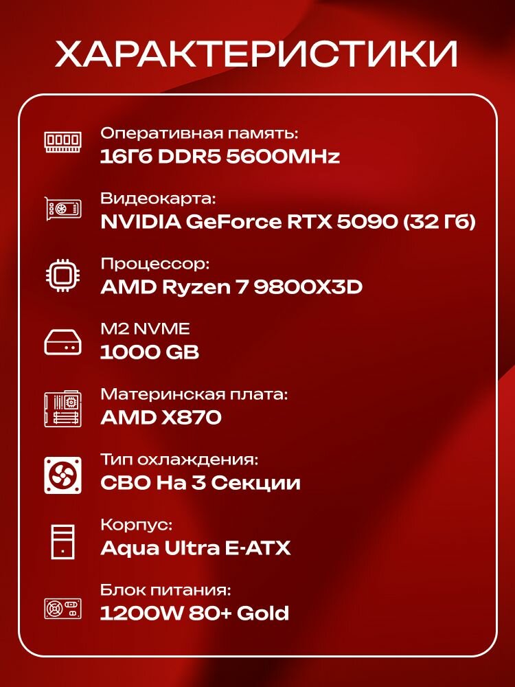 Купить Aqua Ultra E-ATX AIO 360 чёрный, X870, R7 9800X3D AIO3, 1000 NVME, 16 ГБ DDR5, RTX 5090 (32 Гб), 1200W с доставкой по всей России.