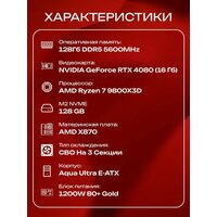 Aqua Ultra E-ATX AIO 360 чёрный, X870, R7 9800X3D AIO3, 128 NVME, 128 ГБ DDR5, RTX 4080 (16 Гб), 1200W