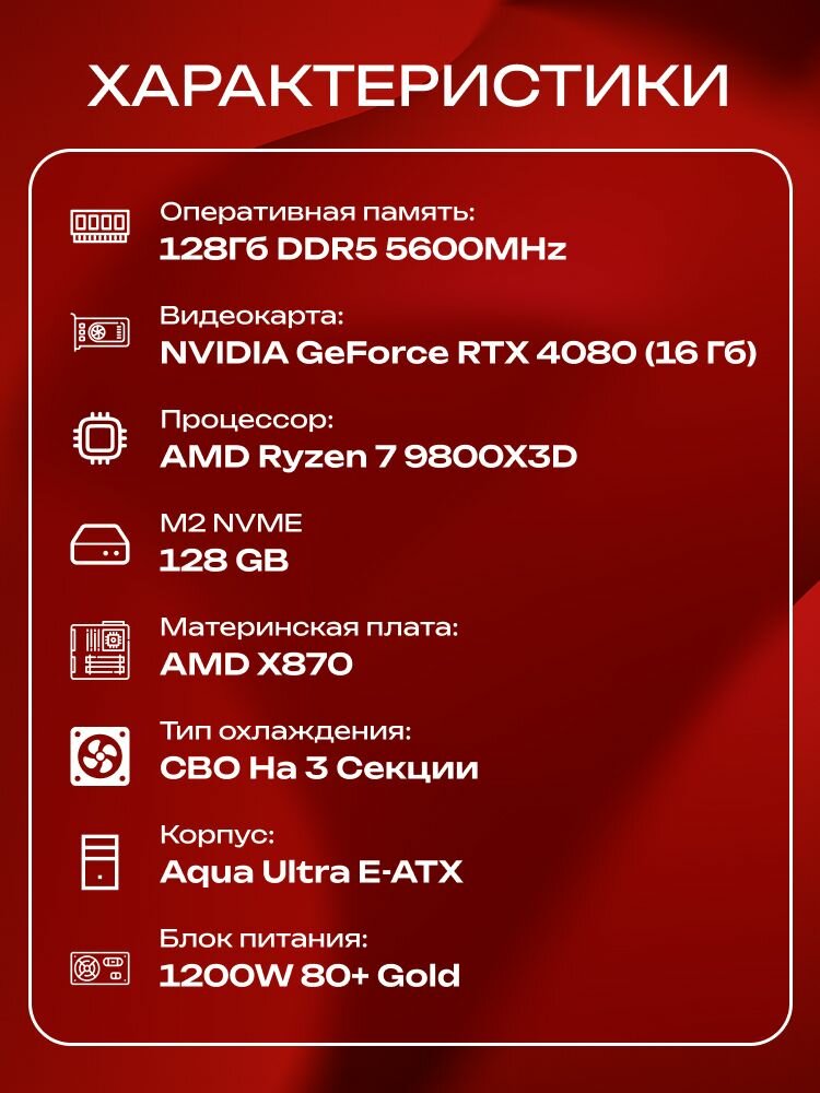 Купить Aqua Ultra E-ATX AIO 360 чёрный, X870, R7 9800X3D AIO3, 128 NVME, 128 ГБ DDR5, RTX 4080 (16 Гб), 1200W с доставкой по всей России.
