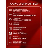 Aqua Ultra E-ATX AIO 360 чёрный, X870, R7 9800X3D AIO3, 256 NVME, 16 ГБ DDR5, RX 6800 (16 Гб), 1200W