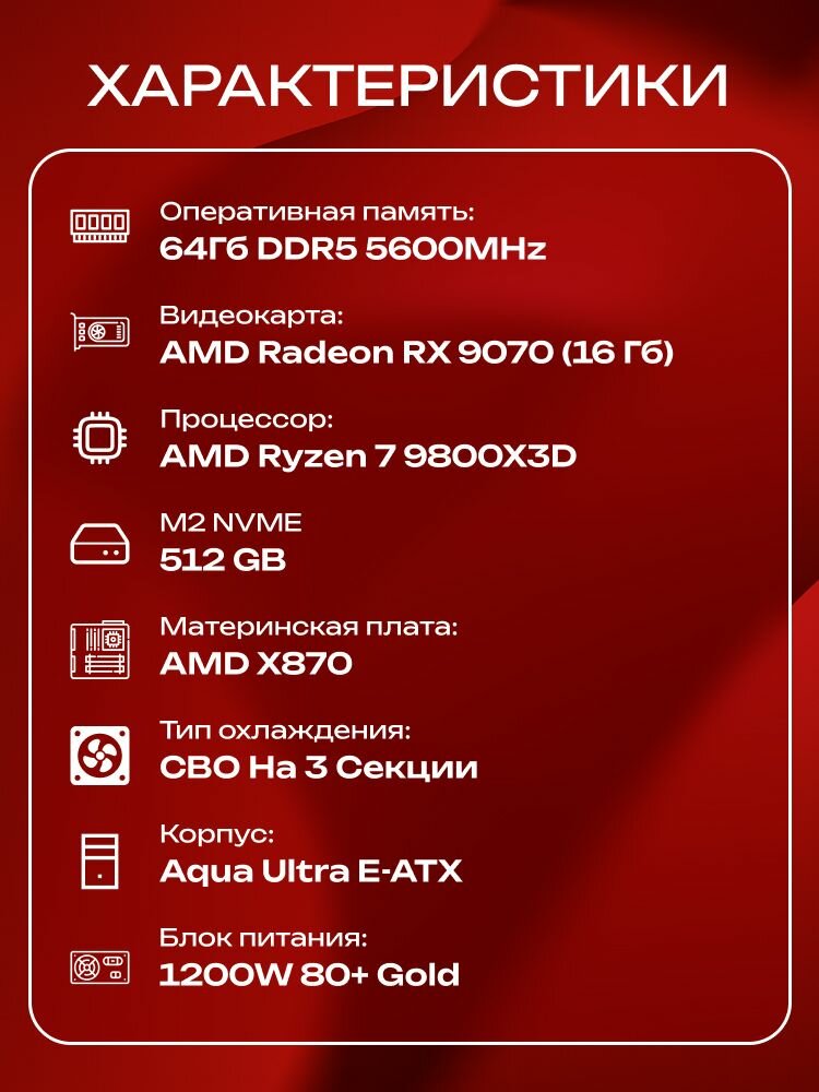 Aqua Ultra E-ATX AIO 360 чёрный, X870, R7 9800X3D AIO3, 512 NVME, 64 ГБ DDR5, RX 9070 (16 Гб), 1200W: сравнение цен, характеристики, фото, актуальное наличие и цены.