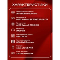 Aqua Ultra E-ATX AIO 360 чёрный, X870, R9 7950X3D AIO3, 1000 NVME, 16 ГБ DDR5, RX 9060 XT (16 Гб), 1200W