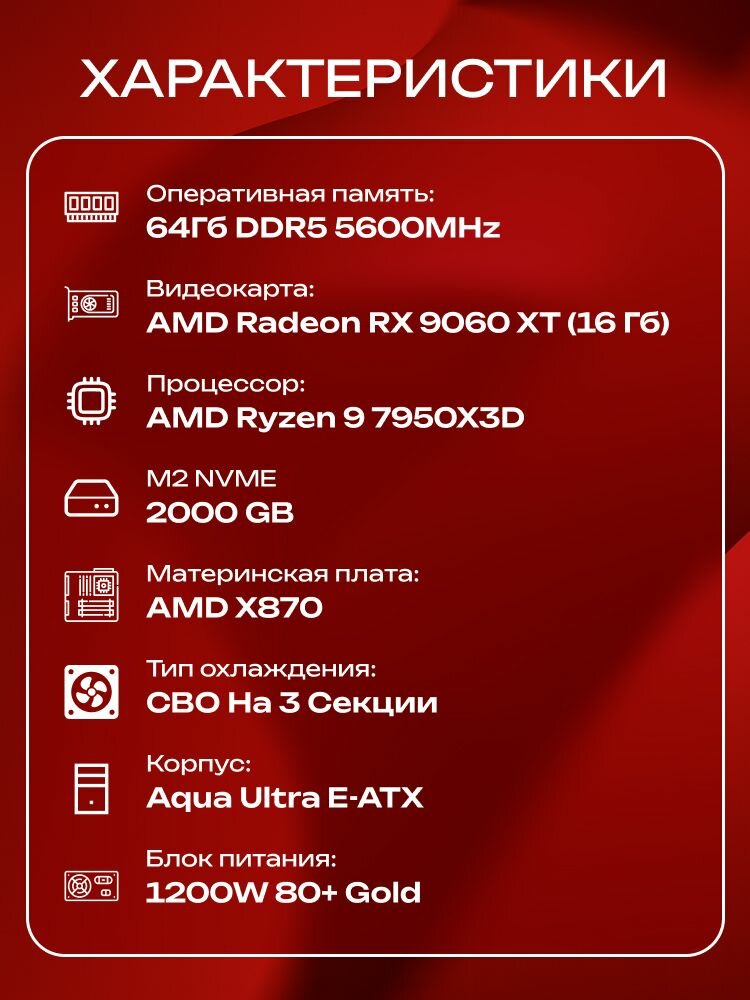Купить Aqua Ultra E-ATX AIO 360 чёрный, X870, R9 7950X3D AIO3, 2000 NVME, 64 ГБ DDR5, RX 9060 XT (16 Гб), 1200W с доставкой по всей России.