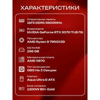 Aqua Ultra E-ATX AIO 360 чёрный, X870, R9 7950X3D AIO3, 256 NVME, 16 ГБ DDR5, RTX 3070 Ti (8 Гб), 1200W