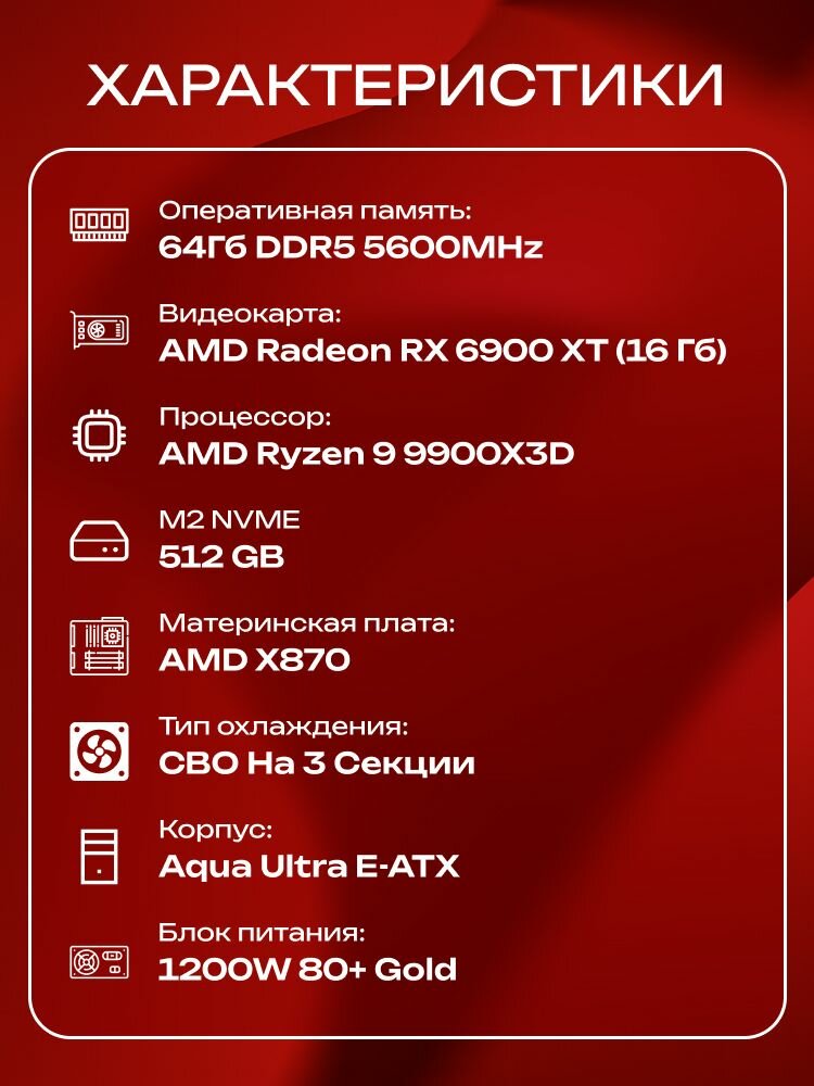 Aqua Ultra E-ATX AIO 360 чёрный, X870, R9 9900X3D AIO3, 512 NVME, 64 ГБ DDR5, RX 6900 XT (16 Гб), 1200W: сравнение цен, характеристики, фото, актуальное наличие и цены.