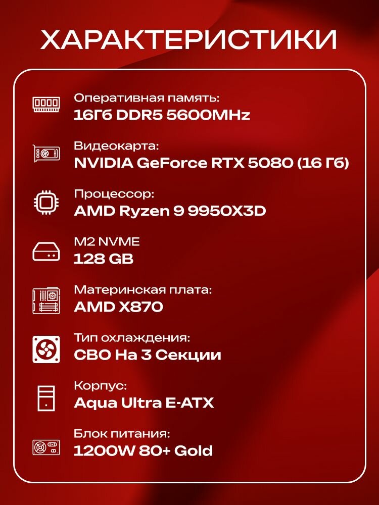 Aqua Ultra E-ATX AIO 360 чёрный, X870, R9 9950X3D AIO3, 128 NVME, 16 ГБ DDR5, RTX 5080 (16 Гб), 1200W: сравнение цен, характеристики, фото, актуальное наличие и цены.