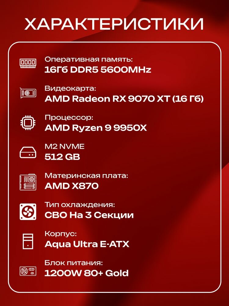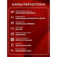 Aqua Ultra E-ATX AIO 360 чёрный, X870, R9 9950X3D AIO3, 512 NVME, 16 ГБ DDR5, RX 9070 XT (16 Гб), 1200W