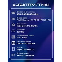 Aqua Ultra E-ATX AIO 360 чёрный, Z790, i7-14700K AIO3, 256 NVME, 16 ГБ DDR5, RX 7900 XTX (24 Гб), 1200W