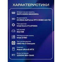 Aqua Ultra E-ATX AIO 360 чёрный, Z790, i7-14700K AIO3, 512 NVME, 32 ГБ DDR5, RTX 3080 (10 Гб), 1200W