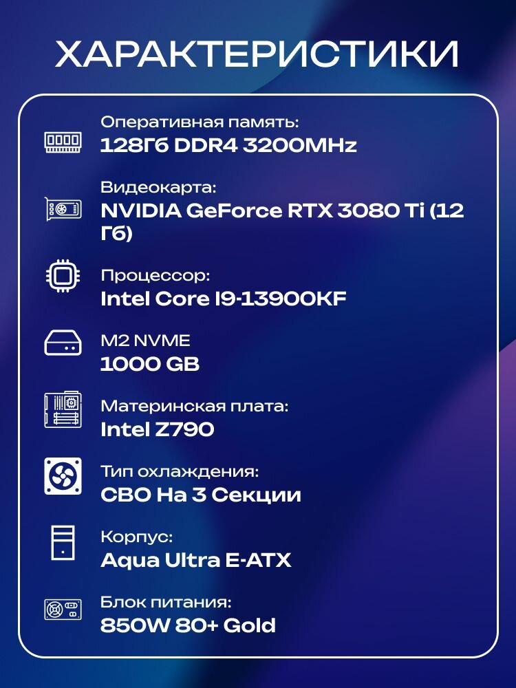 Aqua Ultra E-ATX AIO 360 чёрный, Z790, i9-13900KF AIO3, 1000 NVME, 128 ГБ DDR4, RTX 3080 Ti (12 Гб), 850W: сравнение цен, характеристики, фото, актуальное наличие и цены.