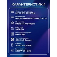 Aqua Ultra E-ATX AIO 360 чёрный, Z790, i9-14900K AIO3, 256 NVME, 16 ГБ DDR5, RTX 5080 (16 Гб), 1200W