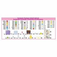 более 2500 бусин в 35 цветах, форма-дисплей для бусин, фоновый лист, крепежи для формы-дисплея, форма для бусин, бутылочка-распылитель для воды, лист с шаблонами, инструкции