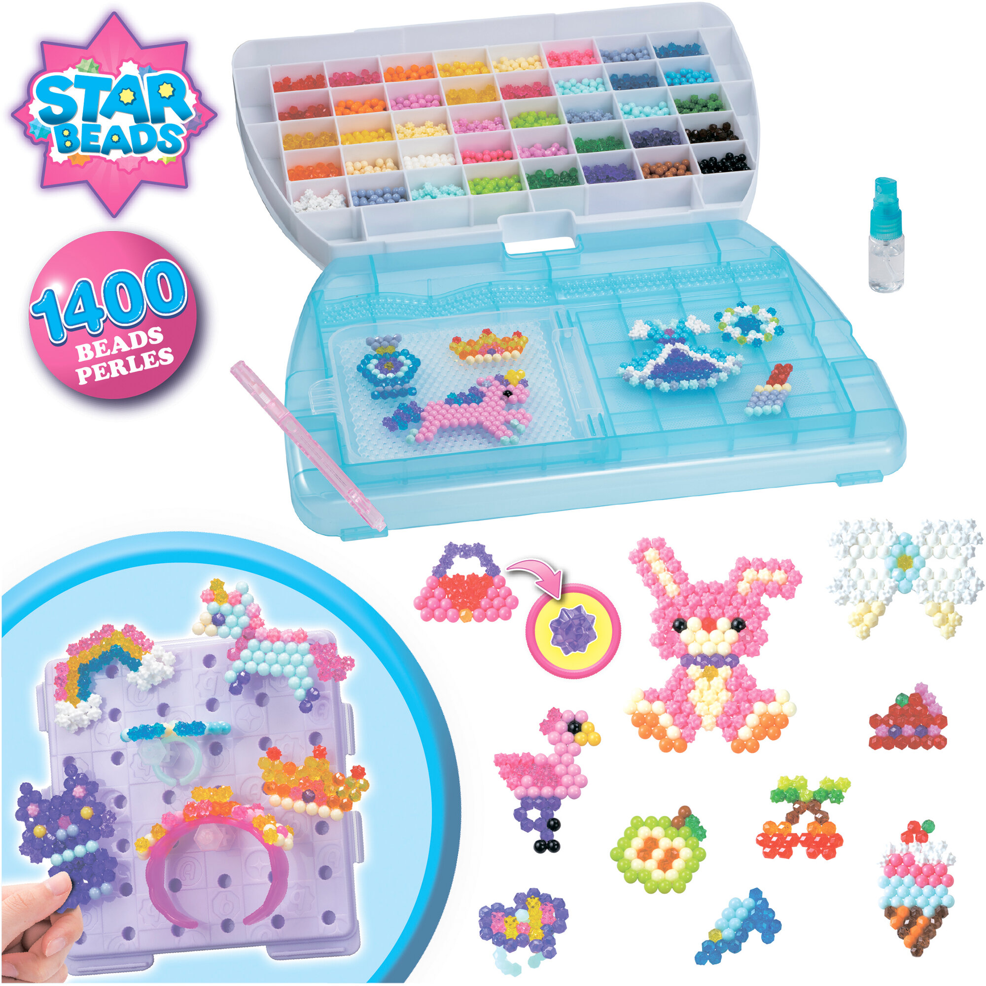 1400 бусин в 40 цветах, футляр поднос с формой для бусин и палитрой, двусторонняя ручка для бусин, бутылочка-распылитель для воды, форма-дисплей для бусин, крепежи для формы-дисплея и футляра, кольцо, браслет, лист с шаблоном, инструкции