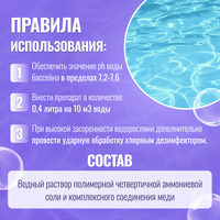 Назначение: Уничтожает водоросли в воде бассейна и предупреждает их образование.