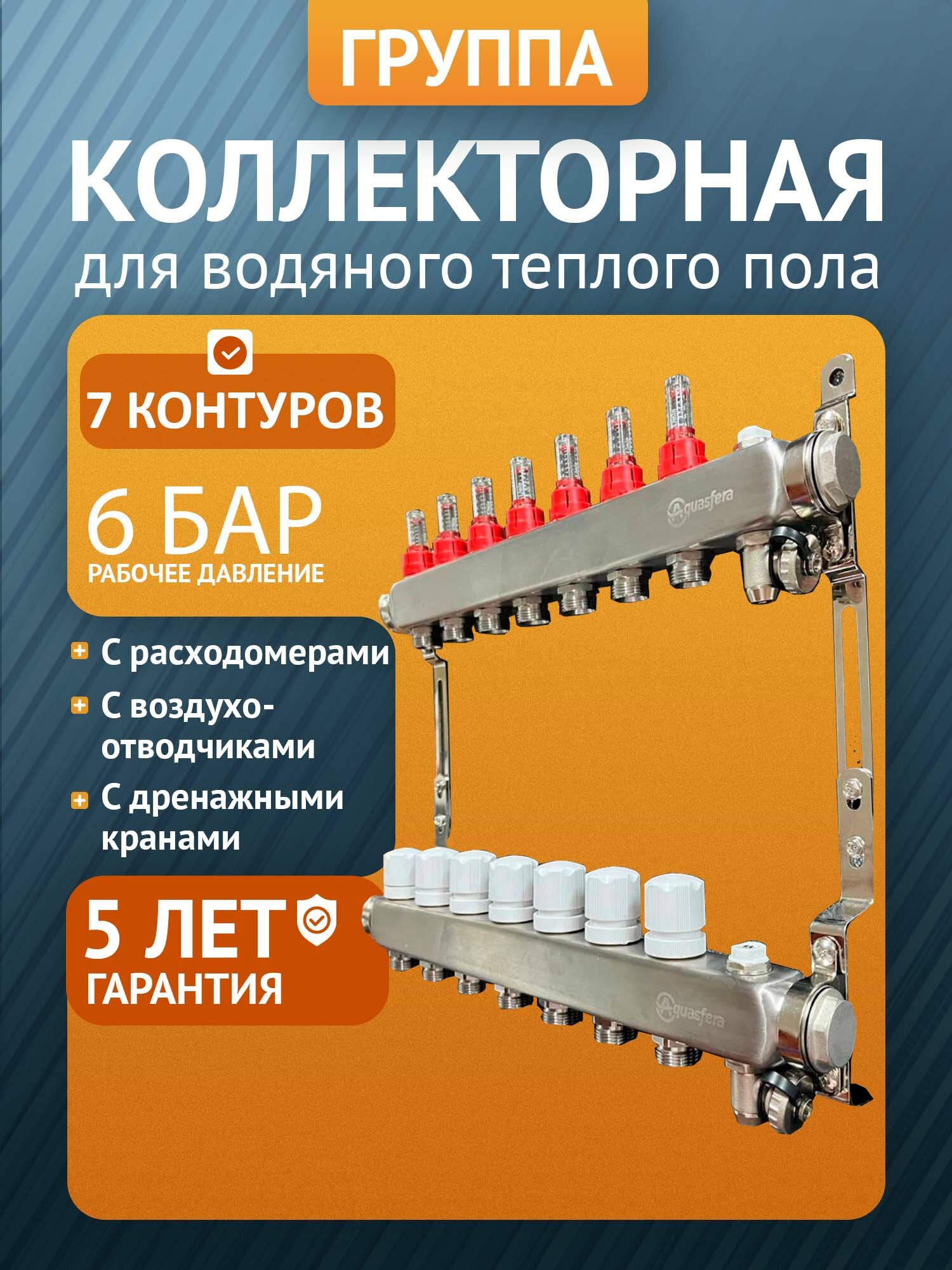 AQUASFERA Коллектор из нержавеющей стали с расходомерами, краны маевского и дренаж 7 вых.: сравнение цен, характеристики, фото, актуальное наличие и цены.