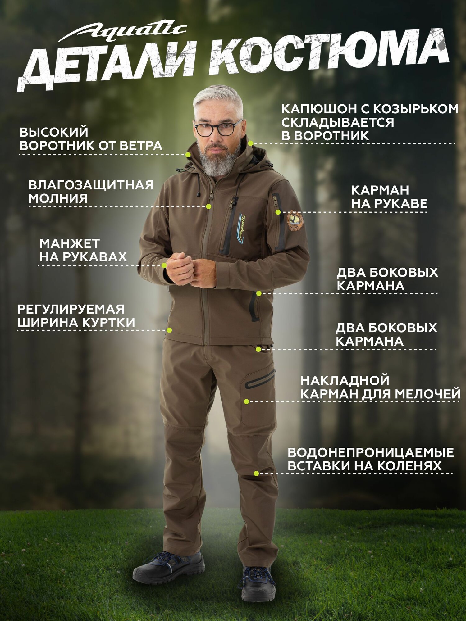 Демисезонный костюм Aquatic К-16 для рыбалки, охоты и отдыха на природе. Изготовлен из современного материала Soft Shell, с высокотехнологичной мембраной. Благодаря которой, костюм обладает высокой водонепроницаемостью и паропроницаемостью. Заменяет три слоя обычной одежды, обеспечивает защиту от осадков и ветра, выводит влагу от тела и сохраняет тепло. Костюм обладает малым весом и эластичностью, не сковывает движения. Максимальный комфорт в экстремальных погодных условиях. Температурный режим товара комфортного использования от +12 до +18 Температурный режим экстремального использования, в качестве третьего слоя от +6 до +12. Демисезонный костюм Акватик – это модная и практичная одежда для мужчин, предпочитающих активный отдых на природе. Данный тактический комплект, выполненный в камуфляжной расцветке , представляет собой отличное сочетание рабочей одежды и рыболовного снаряжения. Комплект вещей состоит из демисезонного защитного костюма, который обеспечивает комфорт при охоте, рыбалке и других видах активного отдыха в переходные сезоны. Благодаря качественным материалам и удобному крою, костюм теплый, модный и подходит для различных размеров. Наличие брюк и курток позволяет выбрать наиболее удобный вариант для каждого мужчины. Рыбацкий набор со штанами станет отличной формой для рыбака. Демисезонный рыболовный костюм создан для охоты, походов и работы в осенний период. Костюм походный и туристический, утепленный и влагозащитный, станет надежной спецодеждой для путешествий и работы. Мужчины и женщины оценят его стиль и функциональность. Стильный охотничий костюм стильный и теплый.