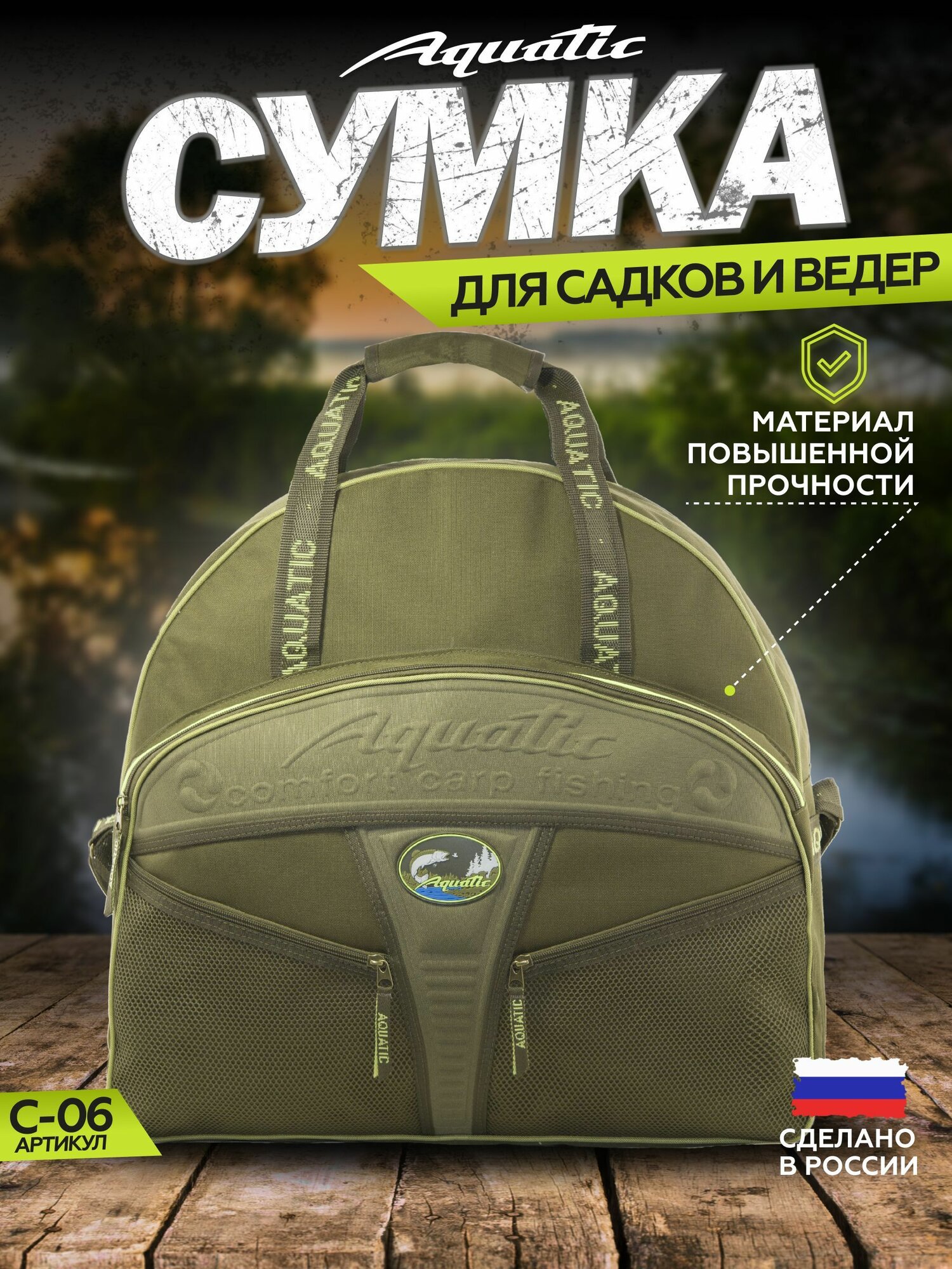 Сумка Aquatic С-06 изготовленная как узкоспециализированная, под транспортировку складывающихся ведер Aquatic и рыболовных садков. Может использоваться для переноски автоматической одно-, двухместной палатки. Изготовлена со свойственной продукции данной компании основательностью и надежностью.