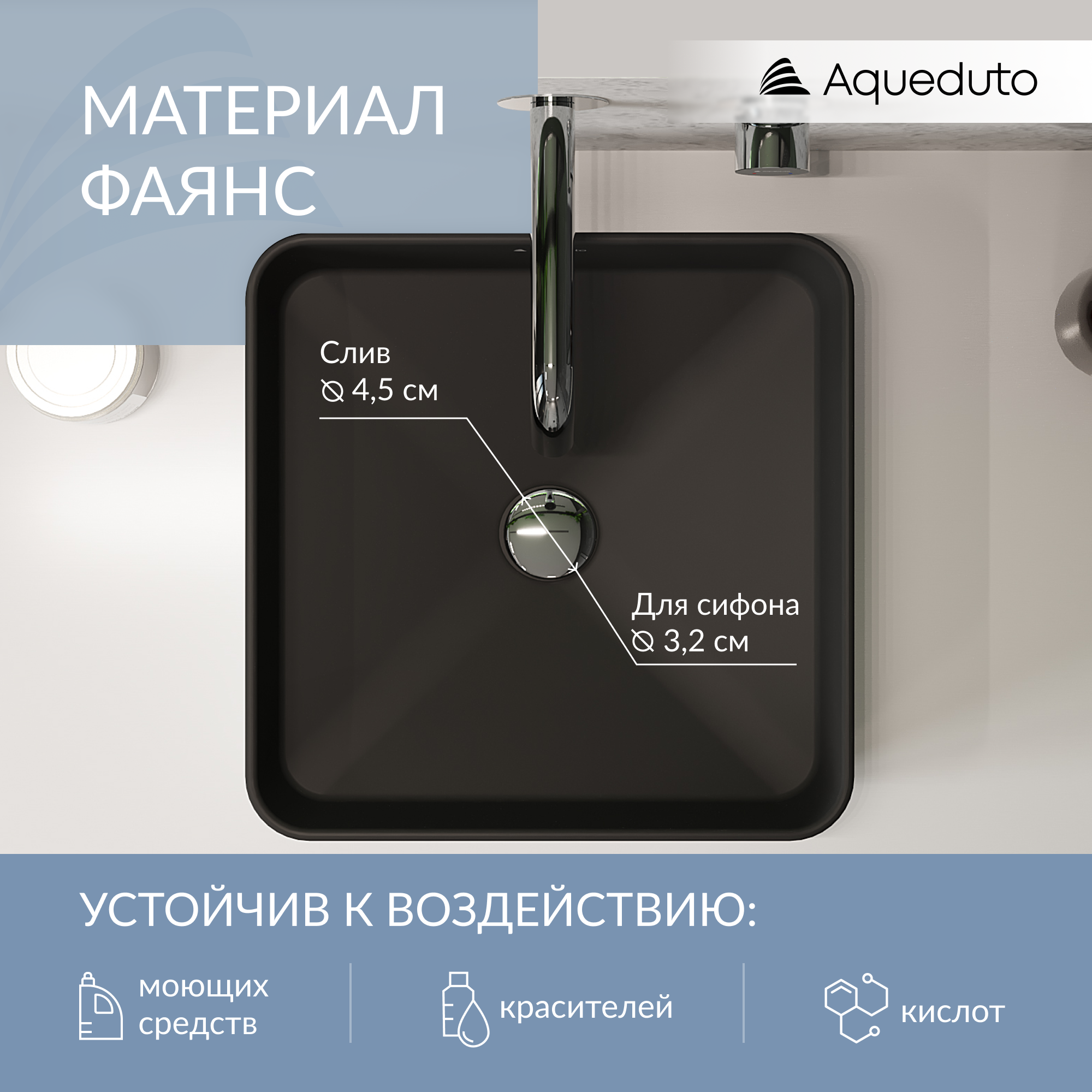 Купить Раковина накладная Aqueduto ESPIRAL, 370*370, черный матовый (ESP0340) с доставкой по всей России.