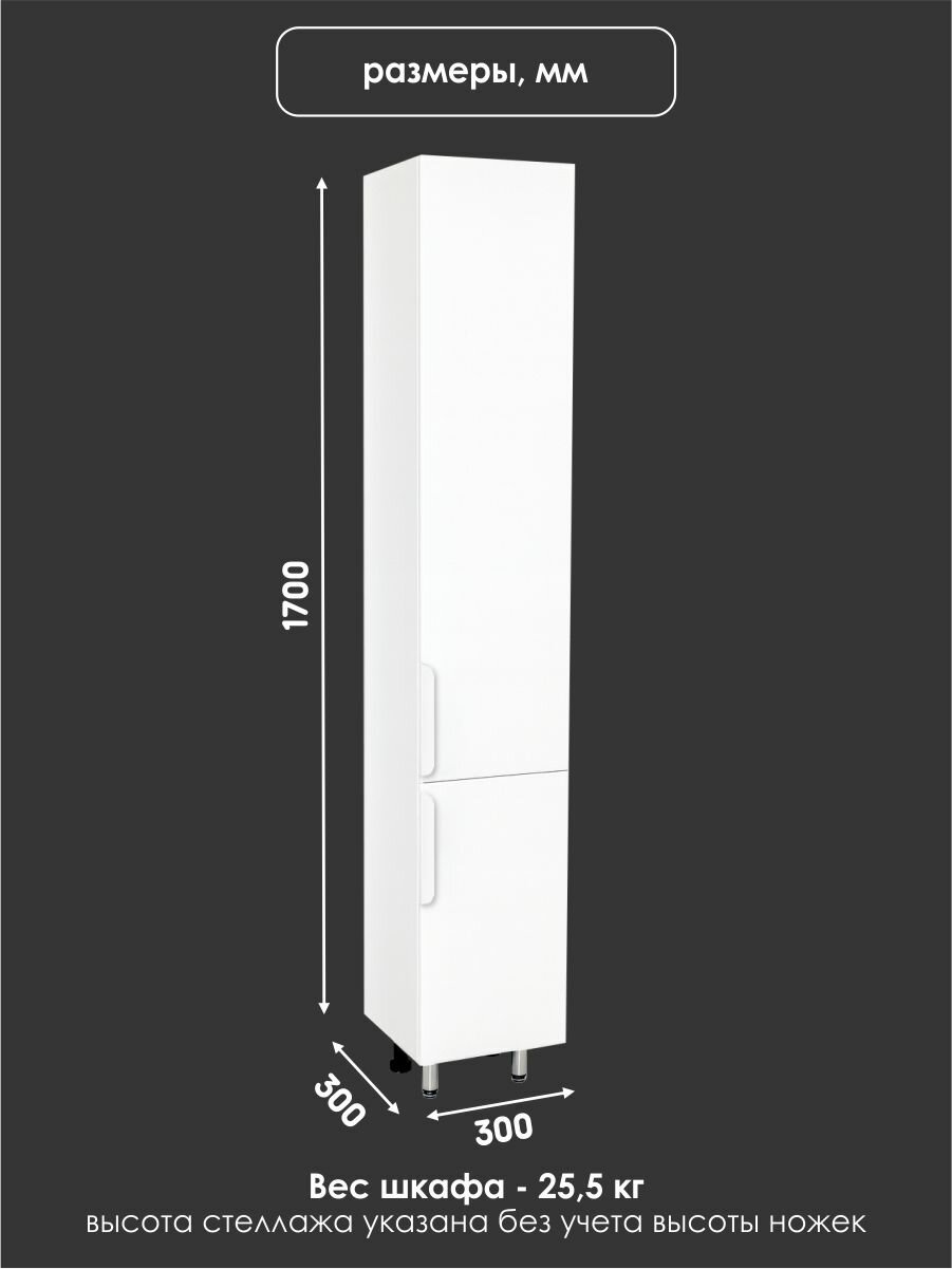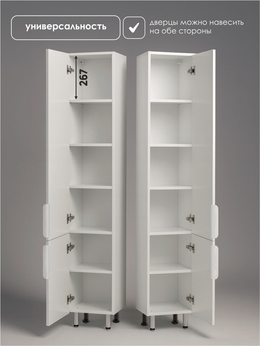 AQVIL Шкаф пенал для ванной напольный с полками универсальный Berta, 30*30*170 см, Белый глянец: сравнение цен, характеристики, фото, актуальное наличие и цены.