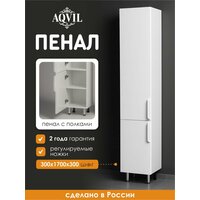 Купить AQVIL Шкаф пенал для ванной напольный с полками универсальный Berta, 30*30*170 см, Белый глянец с доставкой по всей России.