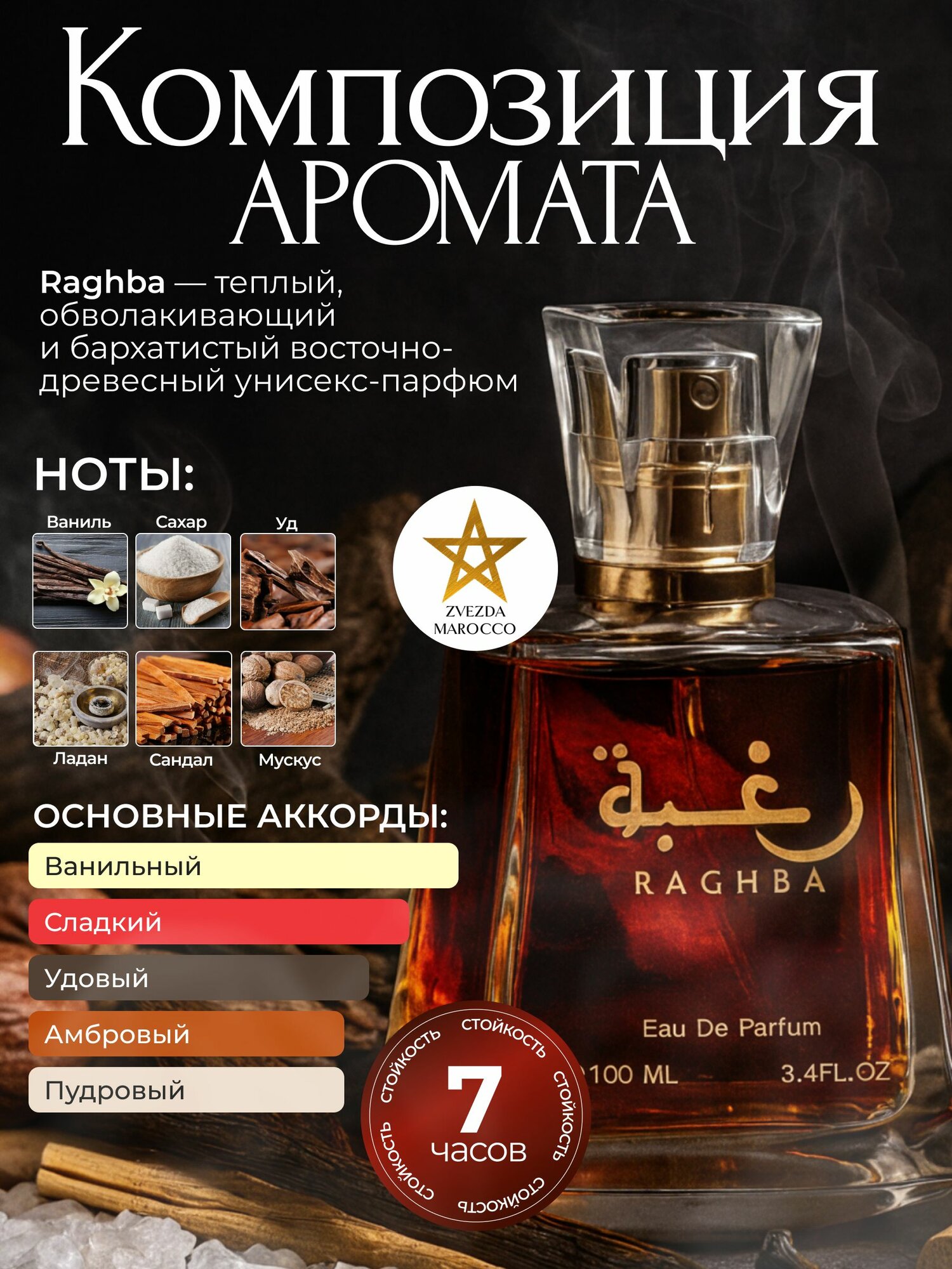 Купить Арабские духи Lattafa Raghba — Рагба парфюмерная вода женская, мужская 100 мл. Сладкие стойкие с ванилью. Удовый аромат из ОАЭ. Унисекс восточная туалетная вода для мужчин и для женщин! с доставкой по всей России.