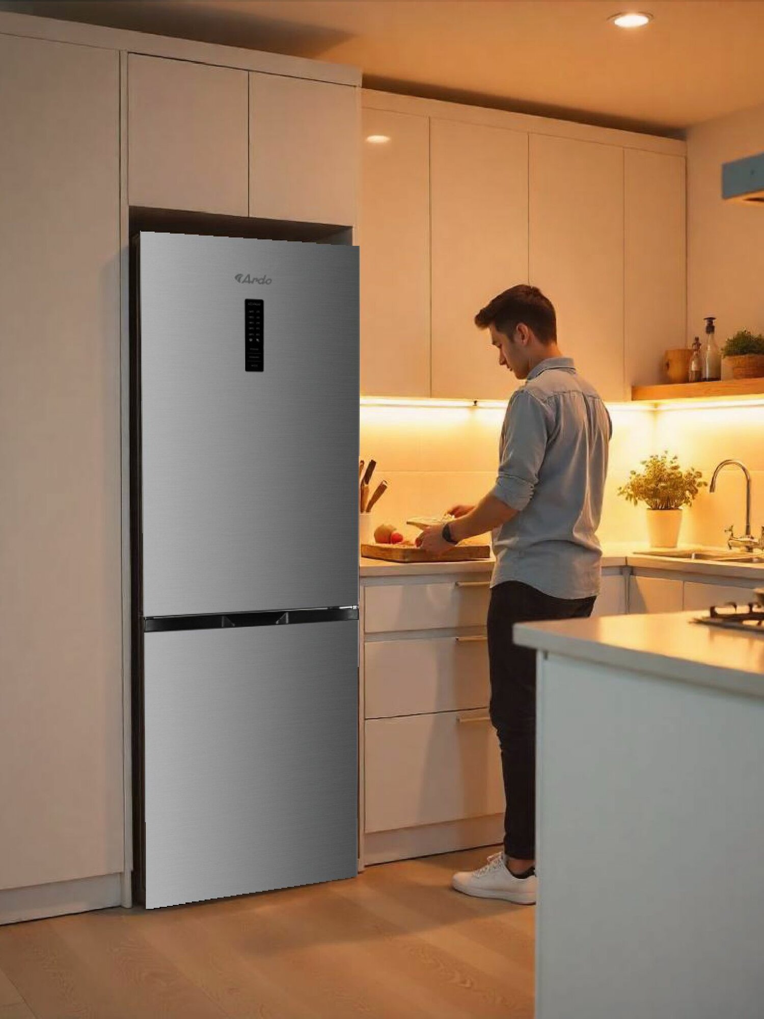 Ardo Холодильник Двухкамерный No Frost Сенсорное управление Зона свежести LED освещение Multi Air Flow А+ серый