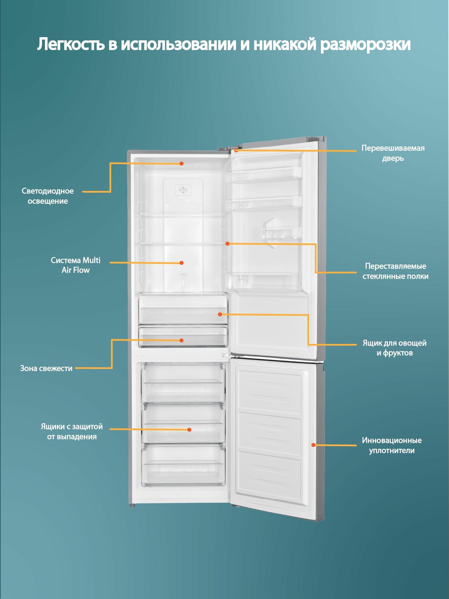 Купить Ardo Холодильник Двухкамерный No Frost Сенсорное управление Зона свежести LED освещение Multi Air Flow А+ серый с доставкой по всей России.